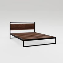 Cama Matrimonial con estructura de acero eletropintado y cubierta en madera.