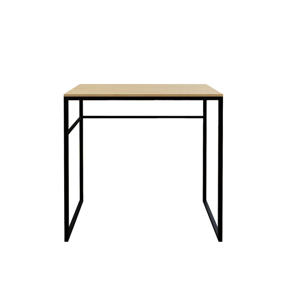Escritorio con estructura de acero electropintado mate y cubierta de madera.