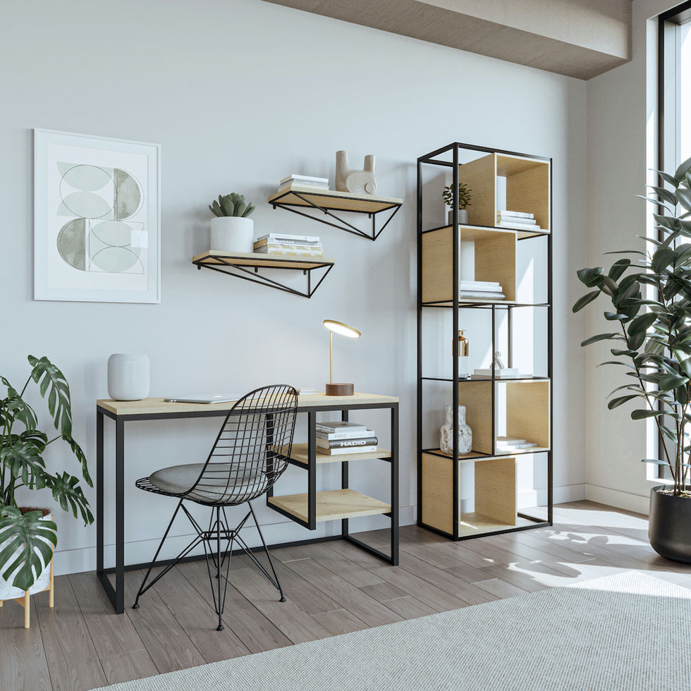 Escritorio con estructura de acero electropintado mate y cubierta de madera. Incluye niveladores.