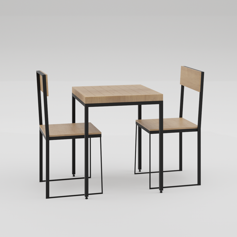 Paquete con dos sillas Artemisa acompañado de la mesa Mafalda de 60cm x 60cm.