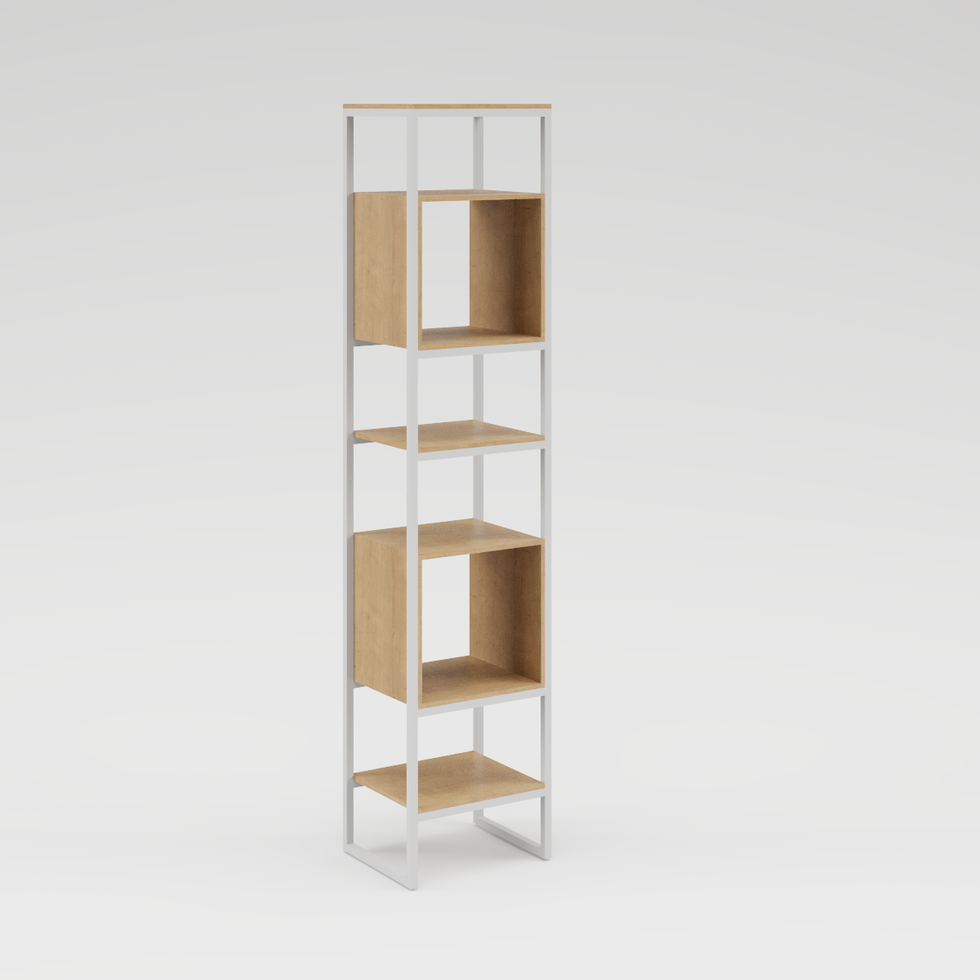 Librero con estructura de acero electropintado mate y cubierta de madera.