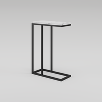 Mesa auxiliar con estructura de acero electropintado mate y cubierta de mármol.