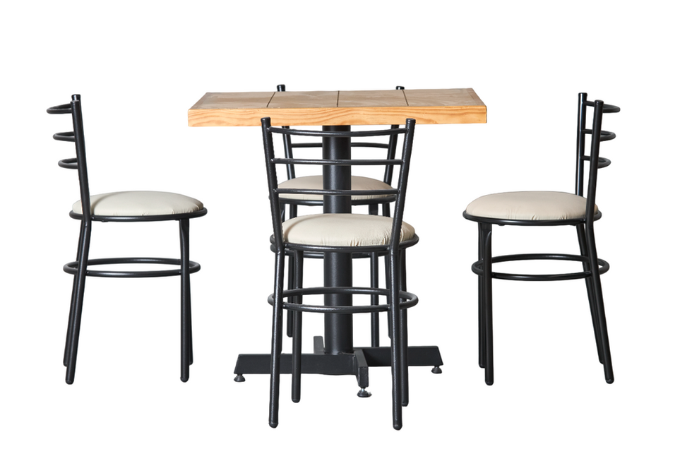 Paquete con cuatro sillas Chabeli acompañado de la mesa Paloma.