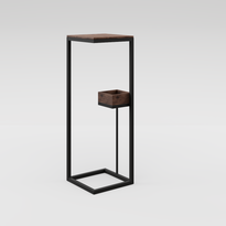Portamacetero para interior- exterior con estructura de acero electropintado mate y cubierta de madera.