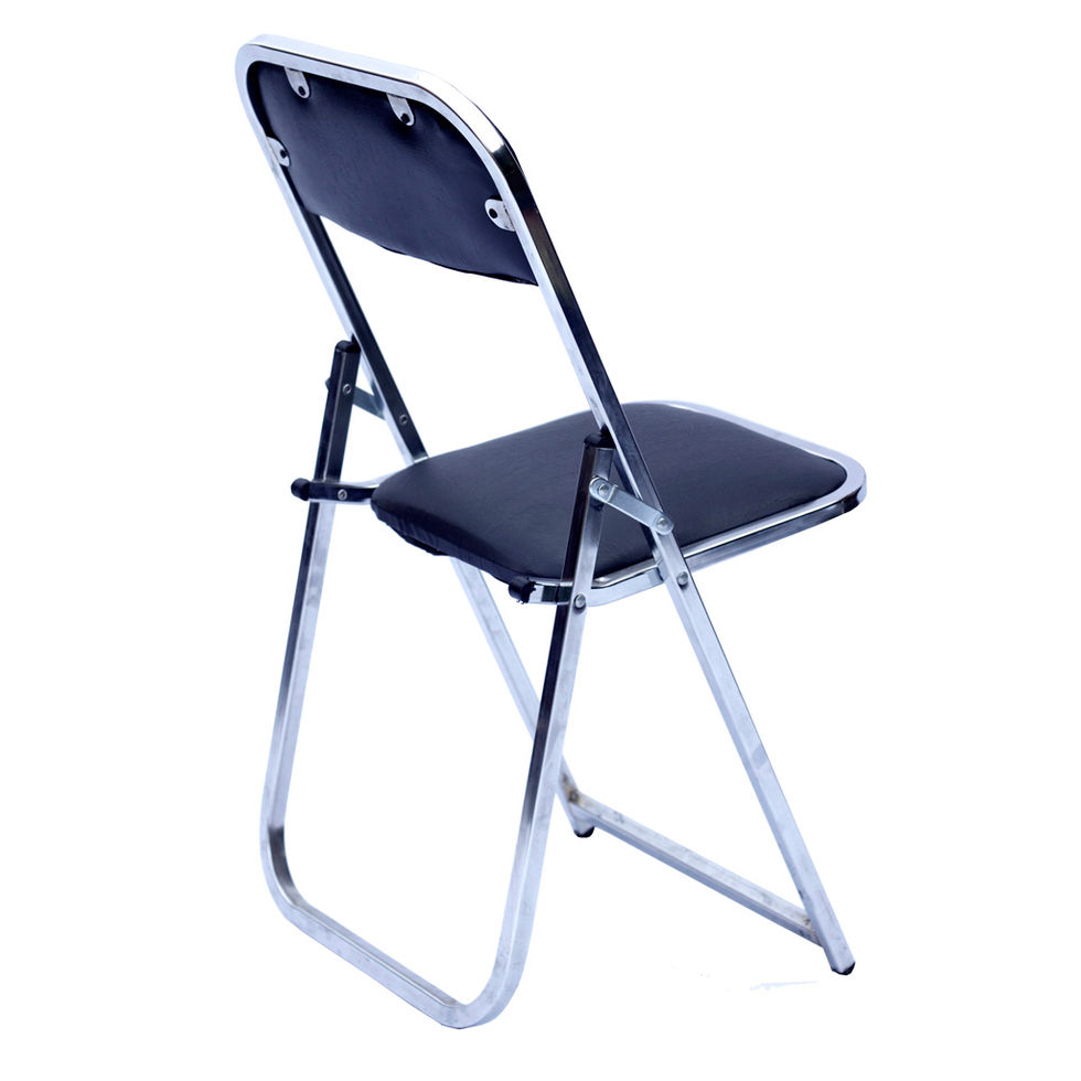 Silla acojinada plegable, conformada por tres piezas en perfil cuadrado con acabado en pintura electrostática o cromo